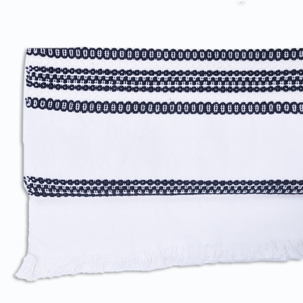 • Cusăturile în nuanțe de negru, dau un aspect aparte acestui ștergar;