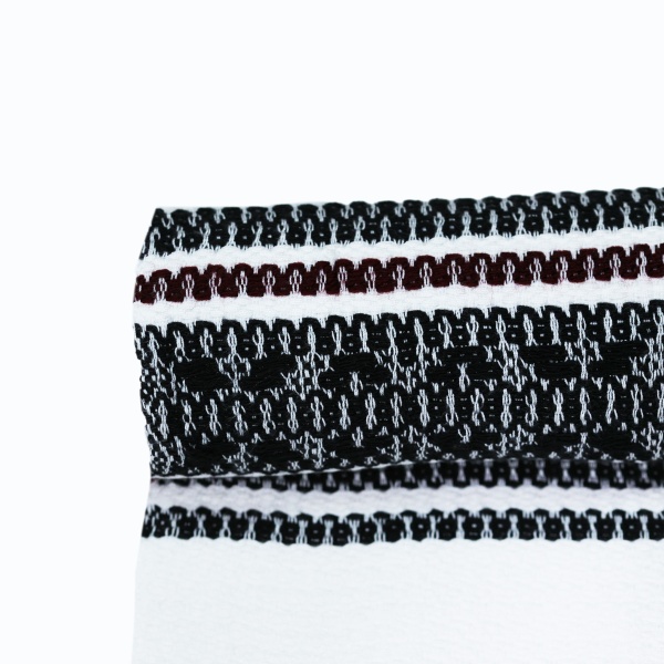 • Cusăturile în nuanțe de negru cu maro și detaliile cusute în nuanțe de vișină coaptă, oferă un aspect deosebit acestui ștergar;