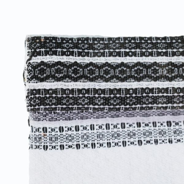 • Cusăturile în nuanțe de negru și detaliile cusute, oferă un aspect deosebit acestui ștergar; Material din bumbac 100%;