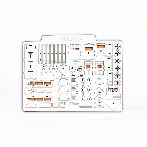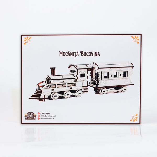 • textura lemnului se îmbină perfect cu motivele tradiționale, oferind o experiență completă de construcție și personalizare.