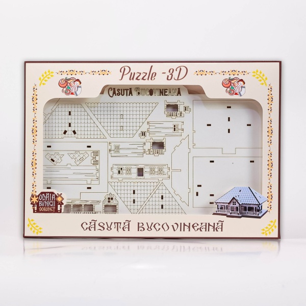 • Fiecare piesă din puzzle reprezinta un detaliu autentic al unei case bucovinene, de la pereți din lemn, până la acoperișuri din țiglă sau șindrilă care pot fi ulterior pictați dupa propria imaginatie.