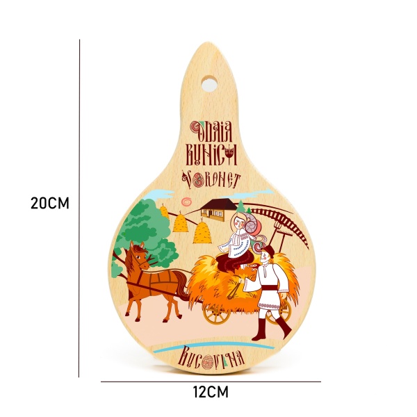 Tocator rotund din lemn - design pitoresc Bucovina - 20 cm x 12 cm