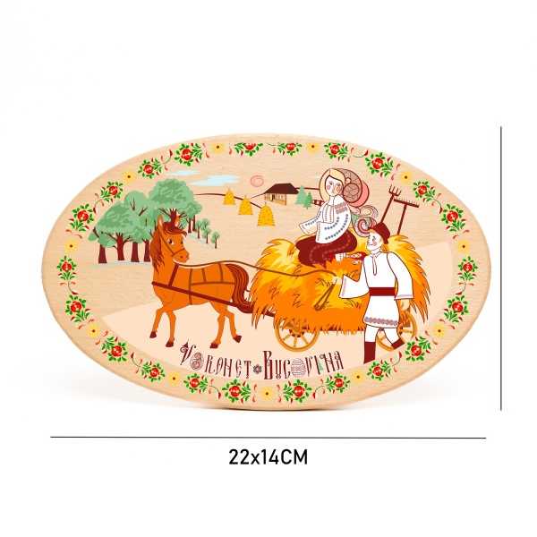 Tocator Oval din lemn - Căruță cu Fân - 22 cm x 14 cm